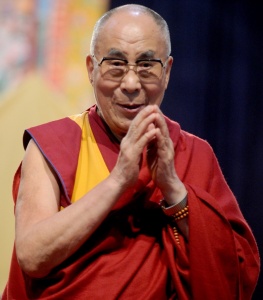 There was an elaborate, painstaking quest that took place in Tibet after the death of a Dalai Lama in order to discover the next Dalai Lama, who was often the reincarnation of the previous spiritual leader. Such was the case following the death in 1933 of the 13th Dalai Lama. After consulting various state oracles, and after months of public prayer and ritual, and after the Lama Regent held his vigil over the sacred lake whose name means “The Godess’ Soul,” they were able to locate from the signs the Lama Regent received in his visions a house with a blue roof in Eastern Tibet, the home of the Taktsher family. A group of Lamas went there in disguise and were taken in by the family, the customary show of hospitality for travelling monks and pilgrims. Within the small house they met an amazing two-year old boy who seemed to know them already, knew where they had come from and, in fact, knew one of them by name. They secretly passed word of their astonishing findings to the capital in Lhasa, and then came the real test. The boy was given three pairs of objects–two strings of nondescript black prayer beads, two walking sticks, and two small drums. In each pair, one of the objects had been owned by the previous Dalai Lama, and the other was a replica. Without hesitation, the boy chose the beads, the stick, and the drum that had belonged to the 13th Dalai Lama–he wasn’t taken in by the imitation drum that had a shiny gold band and a colorful tassel. He took possession of these objects like they had always been his, and he played his drum for the visitors with intense dignity, gazing deeply at each them with such profound sureness, that they knew immediately…he was…the one.
